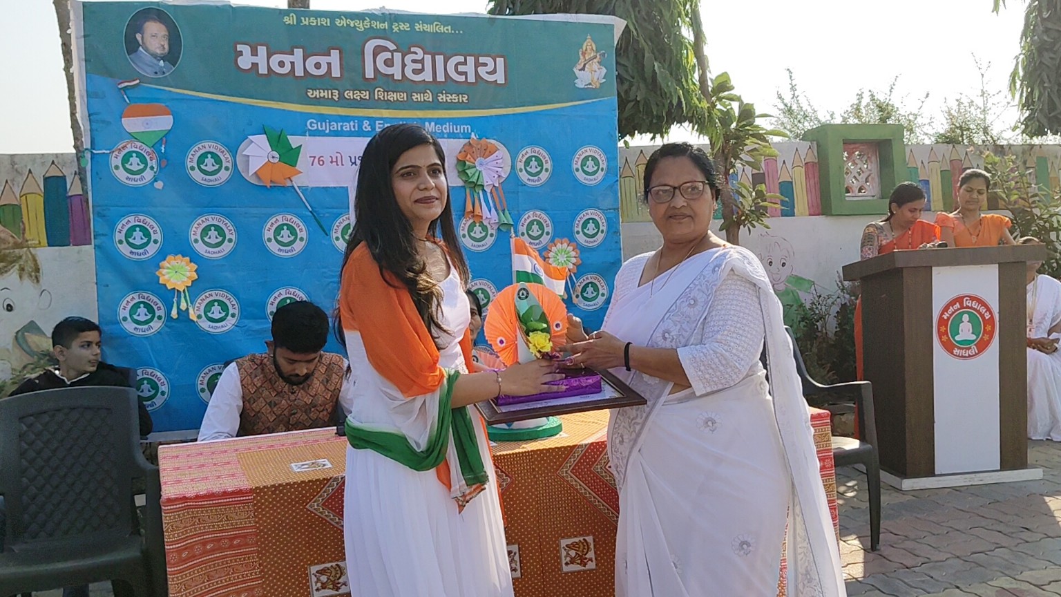 મનન વિધાલય સાધલી ના વિધાર્થીઓ દ્વારા દેશ ભક્તિ ના ગીતો સાથે પર્ફોમન્સ કરી સમગ્ર વાતાવરણ દેશ ભક્તિ મય બનાવી દીધું હતું.