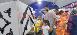 આ શસ્ત્ર પ્રદર્શન સ્ટોલમાં બે સ્નાઈપર, લાઇટ મશીન ગન, મશીન પિસ્તોલ, ઇન્સાન રાયફલ, એસ.આઈ.જી. સોર સહિતના હથિયારો, વિવિધ સાઈઝની બુલેટ્સ, ૧૯મી સદીની અંગ્રજોના શાસનકાળની ૩૦૩ મેકીસમ મશીન ગન, સ્પીડ ગન, બોમ્બ ડિટેક્શન એન્ડ ડિસ્પોઝલ સ્ક્વોડના વિવિધ સાધનો પ્રદર્શિત કરવામાં આવ્યા છે.