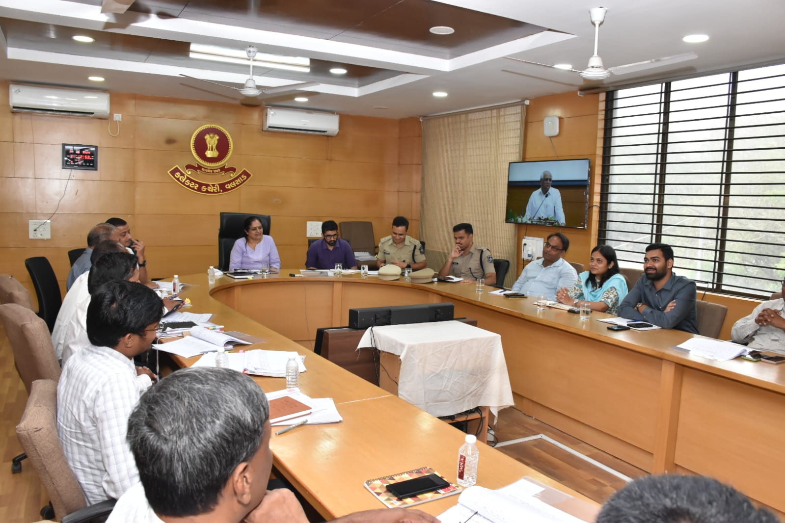 મુખ્યમંત્રીશ્રી ભુપેન્દ્રભાઈ પટેલની બ્રિફિંગ મીટિંગનું જીવંત પ્રસારણ જિલ્લા કલેકટર કચેરીના સભાખંડમાં સૌએ નિહાળ્યું