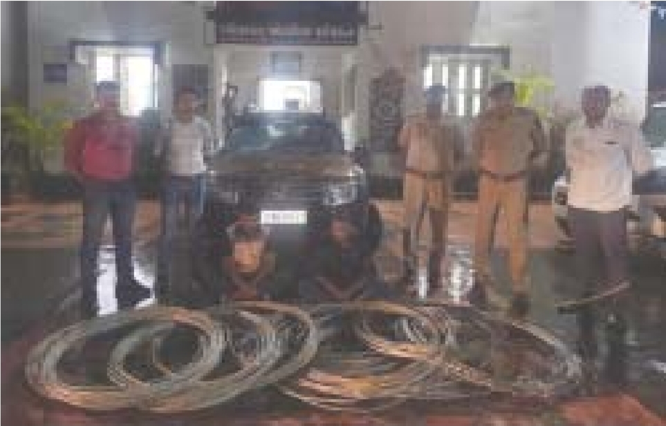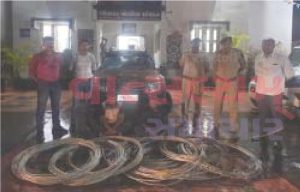 નવસારી જિલ્લાની વાંસદા પોલીસની ટીમે ડીજીવીસીએલ ના ચોરાએલ વીજતાર ગુનાના બે આરોપીઓને ગણતરીના કલાકોમાં ઝડપી લીધા છે. આ ચોરીમાં વપરાયેલું વાહન સહિત ૩.૫૨ લાખની કિંમતનો વીજતાર નો મુદ્દામાલ કબજે કર્યો છે. વાંસદા પોલીસ ટીમે મળેલ પૂર્વ બાતમીના આધારે ચોક્કસ સ્થળે વોચ ગોઠવી હતી. વર્ણન વાળી કાર નં.GJ-38 BA-9527 આવતા તેની તલાશી લેતા કારમાંથી ડીજીવીસીએલ કંપનીના ચોરાયેલા વીજતારના જથ્થો મળી આવ્યો હતો. કાર સહિત ૩.૫૨ લાખનો મુદ્દામાલ જપ્ત કરી વાંસદા પોલીસે પ્રશાંત રાજેશભાઇ ભોયા અને હસ્તદિપ ધીરુભાઇ ગાયકવાડ બંને રહે. કામળઝરી તા.વાંસદા જી. નવસારી ની ધરપકડ કરી આગળની તપાસ હાથ ધરી છે.