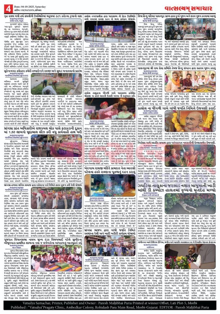 Home/E-PAPER/Vatsalyam Samachar E-PAPER / વાત્સલ્યમ્ સમાચારની 04/10/2025 ની PDF આવૃત્તિ E-PAPERGUJARAT Vatsalyam Samachar E-PAPER / વાત્સલ્યમ્ સમાચારની 04/10/2025 ની PDF આવૃત્તિ News Paper Pdf VATSALYAM SAMACHAR14 minutes agoLast Updated: October 4, 2025 2 Less than a minute View Fullscreen Sorry, there was a YouTube error. VATSALYAM SAMACHAR14 minutes agoLast Updated: October 4, 2025 2 Less than a minute Facebook X LinkedIn Messenger Messenger WhatsApp Telegram Share via Email Follow Us