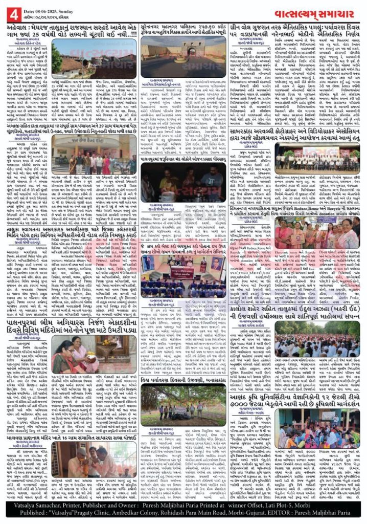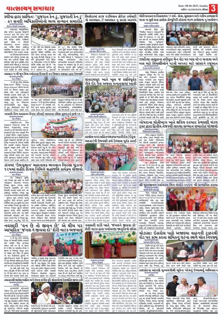 Vatsalyam Samachar E-PAPER / વાત્સલ્યમ્ સમાચારની 08/06/2025 ની PDF આવૃત્તિ