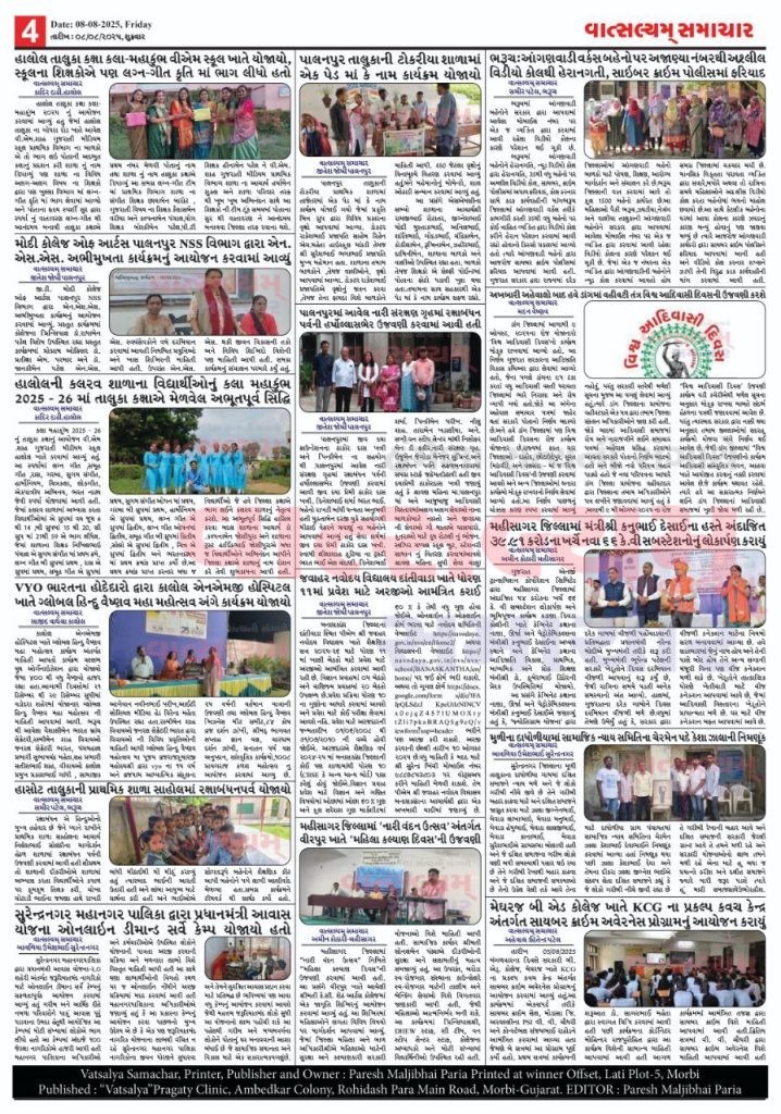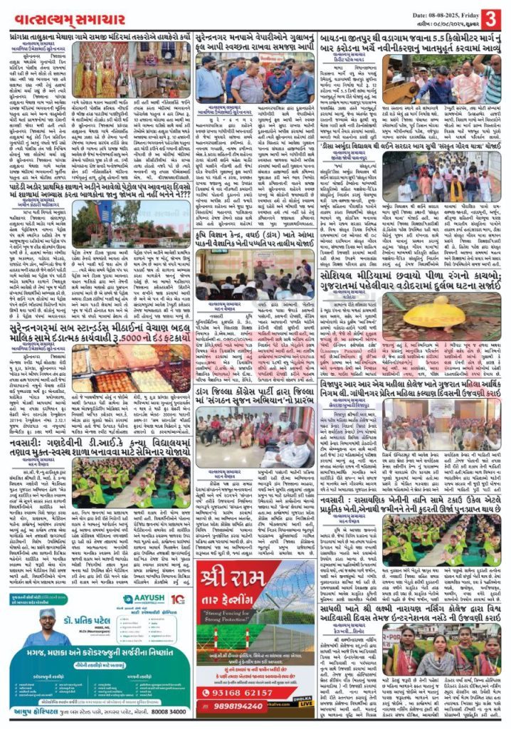 Home/E-PAPER/Vatsalyam Samachar E-PAPER / વાત્સલ્યમ્ સમાચારની 08/08/2025 ની PDF આવૃત્તિ E-PAPERGUJARAT Vatsalyam Samachar E-PAPER / વાત્સલ્યમ્ સમાચારની 08/08/2025 ની PDF આવૃત્તિ News Paper Pdf VATSALYAM SAMACHARAugust 8, 2025Last Updated: August 8, 2025 9 Less than a minute View Fullscreen Sorry, there was a YouTube error. VATSALYAM SAMACHARAugust 8, 2025Last Updated: August 8, 2025 9 Less than a minute Facebook X LinkedIn Messenger Messenger WhatsApp Telegram Share via Email Follow Us