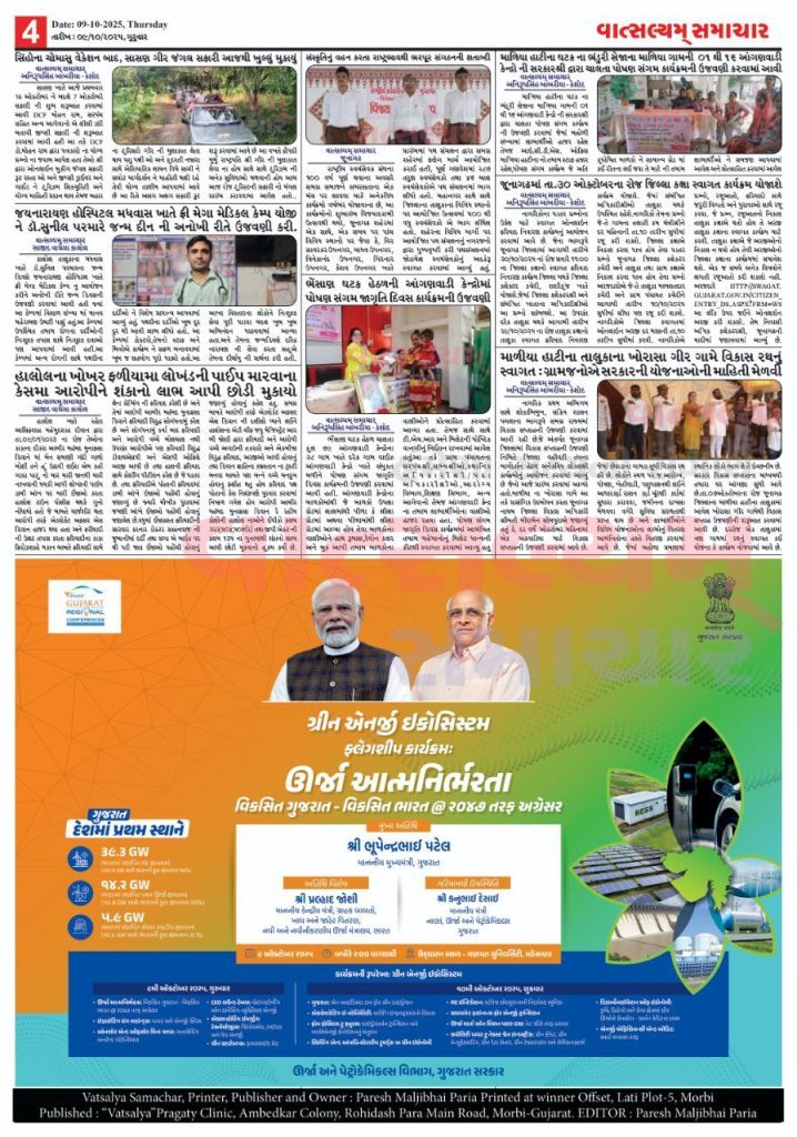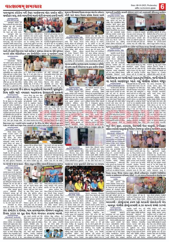 Home/E-PAPER/Vatsalyam Samachar E-PAPER / વાત્સલ્યમ્ સમાચારની 09/10/2025 ની PDF આવૃત્તિ E-PAPERGUJARAT Vatsalyam Samachar E-PAPER / વાત્સલ્યમ્ સમાચારની 09/10/2025 ની PDF આવૃત્તિ News Paper Pdf VATSALYAM SAMACHAR2 hours agoLast Updated: October 9, 2025 2 Less than a minute View Fullscreen « Prev1 / 73Next »ઋષિ ભૂમિ Tankaraના આંગણે ભવ્ય નિ:શુલ્ક Yogutasav ઉજવાશે.વિધાનગરમાં થયેલ મારામારીના બનાવ અંગે DYSP જે.એન.પંચાલની પ્રતિક્રિયાDeleted video« Prev1 / 73Next » VATSALYAM SAMACHAR2 hours agoLast Updated: October 9, 2025 2 Less than a minute Facebook X LinkedIn Messenger Messenger WhatsApp Telegram Share via Email Follow Us