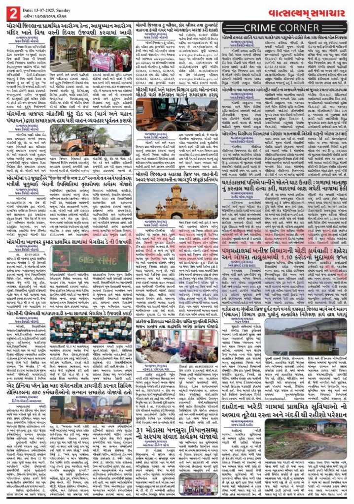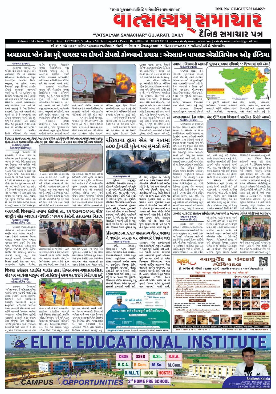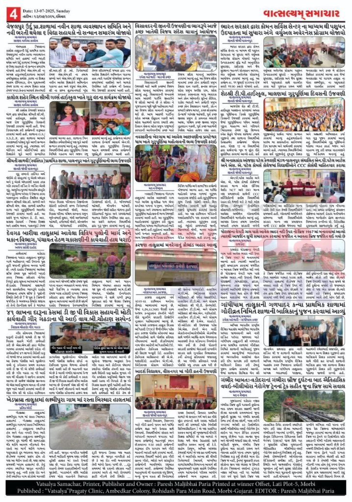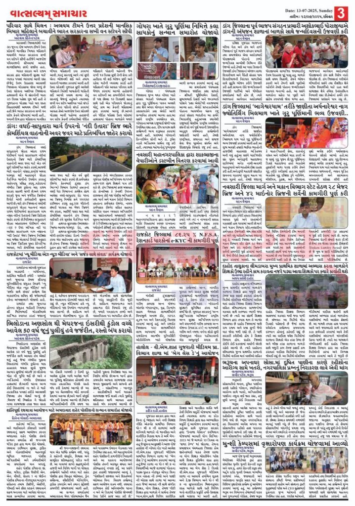 Vatsalyam Samachar E-PAPER / વાત્સલ્યમ્ સમાચારની 13/07/2025 ની PDF આવૃત્તિ