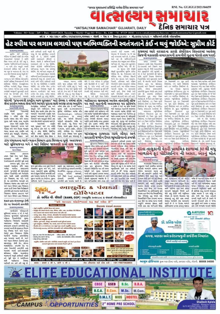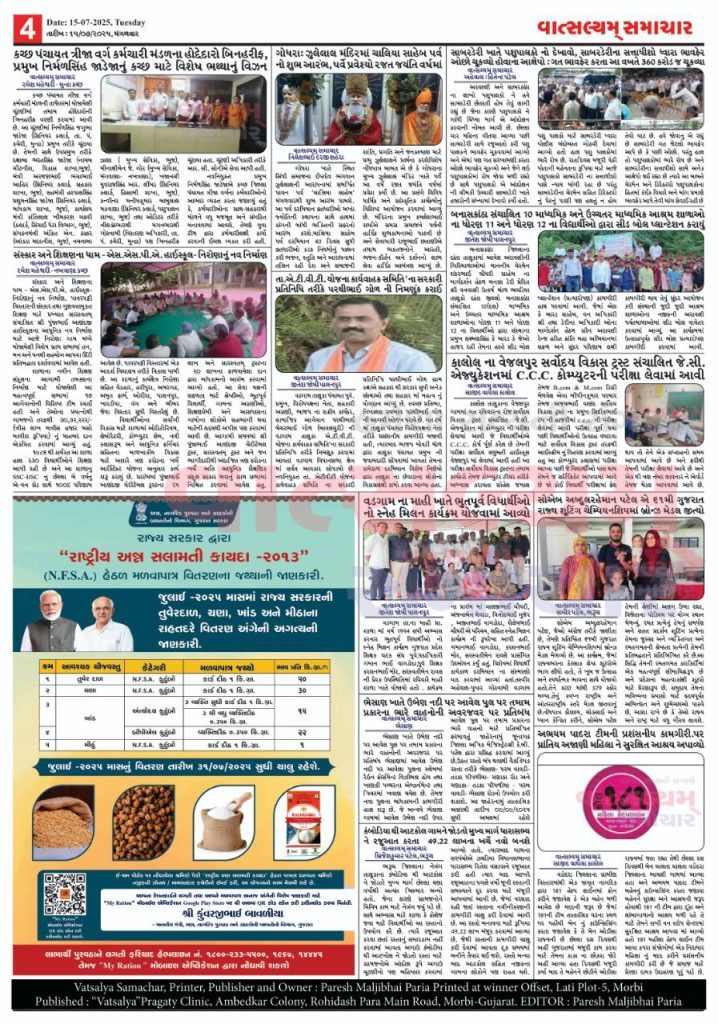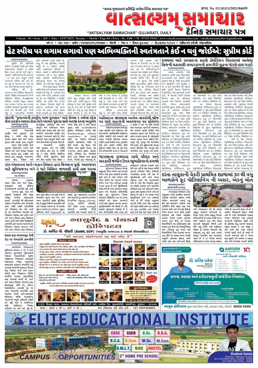 Vatsalyam Samachar E-PAPER / વાત્સલ્યમ્ સમાચારની 15/07/2025 ની PDF આવૃત્તિ