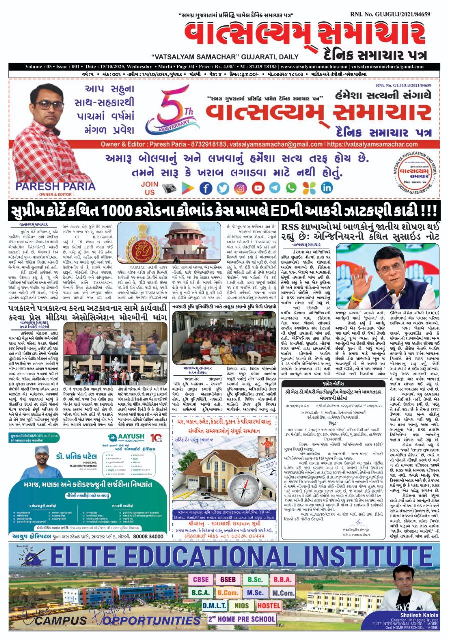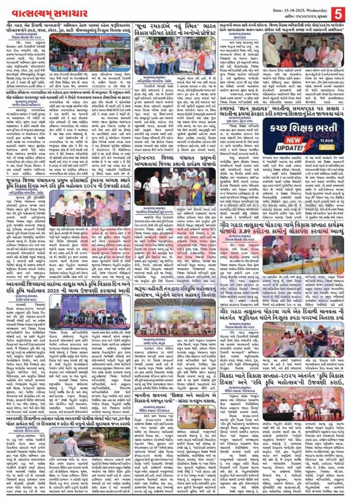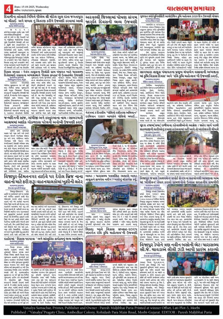 Vatsalyam Samachar E-PAPER / વાત્સલ્યમ્ સમાચારની 15/10/2025 ની PDF આવૃત્તિ