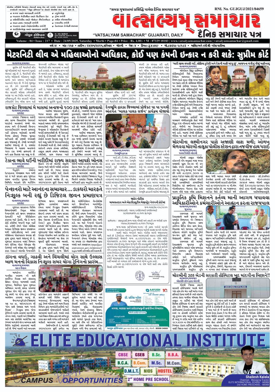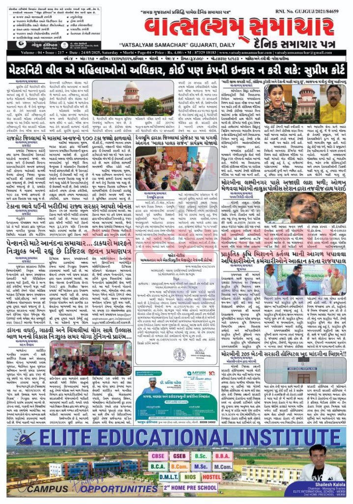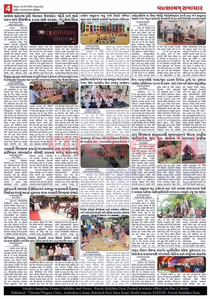 Vatsalyam Samachar E-PAPER / વાત્સલ્યમ્ સમાચારની 24/05/2025 ની PDF આવૃત્તિ