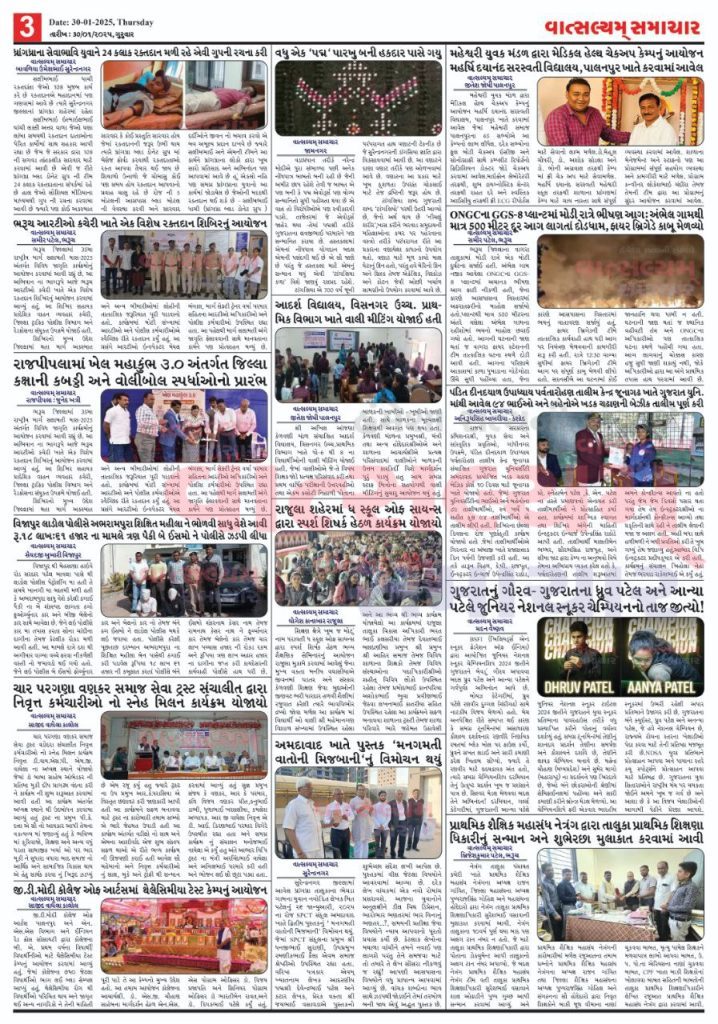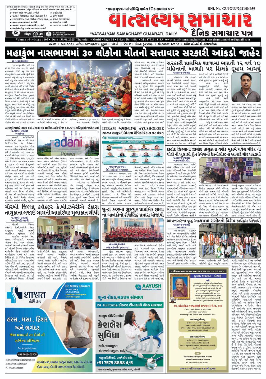 Vatsalyam Samachar E-PAPER / વાત્સલ્યમ્ સમાચારની 30/01/2025 ની PDF આવૃત્તિ