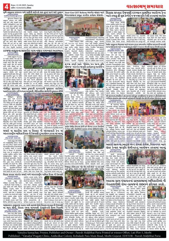 Vatsalyam Samachar E-PAPER / વાત્સલ્યમ્ સમાચારની 12/10/2025 ની PDF આવૃત્તિ