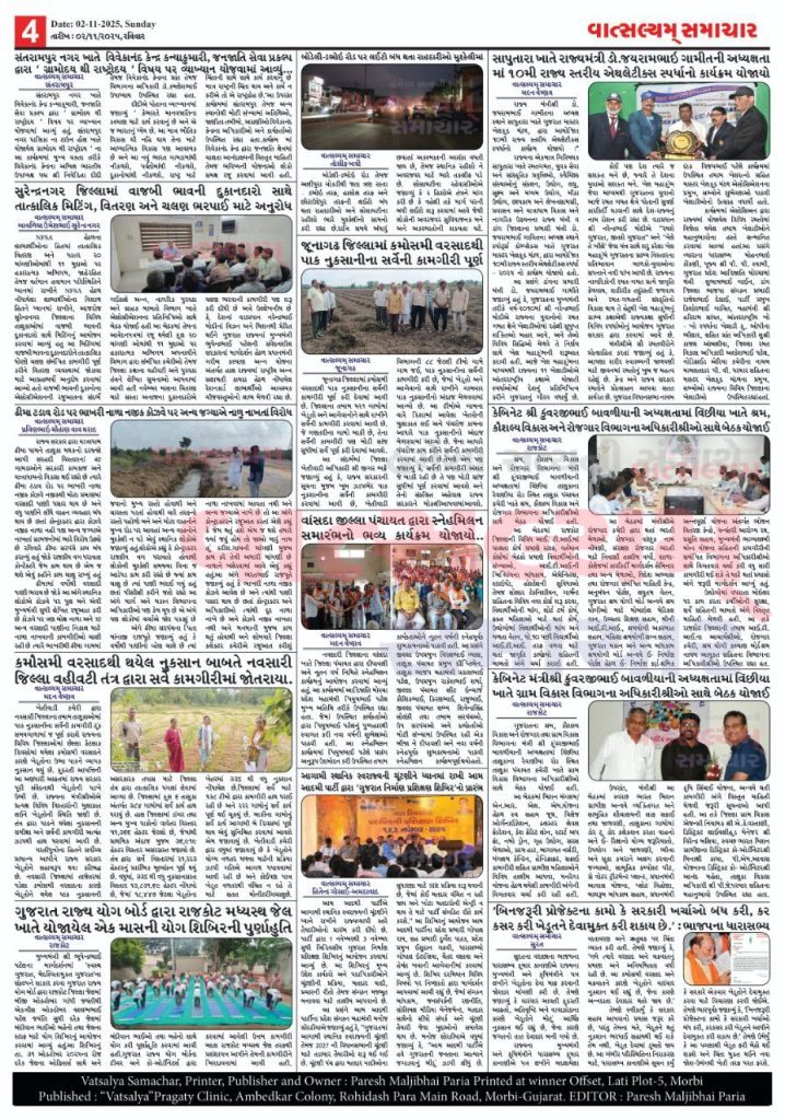 Home/E-PAPER/Vatsalyam Samachar E-PAPER / વાત્સલ્યમ્ સમાચારની 03/11/2025 ની PDF આવૃત્તિ E-PAPERGUJARAT Vatsalyam Samachar E-PAPER / વાત્સલ્યમ્ સમાચારની 03/11/2025 ની PDF આવૃત્તિ News Paper Pdf VATSALYAM SAMACHAR6 hours agoLast Updated: November 3, 2025 2 Less than a minute View Fullscreen Sorry, there was a YouTube error. VATSALYAM SAMACHAR6 hours agoLast Updated: November 3, 2025 2 Less than a minute Facebook X LinkedIn Messenger Messenger WhatsApp Telegram Share via Email Follow Us