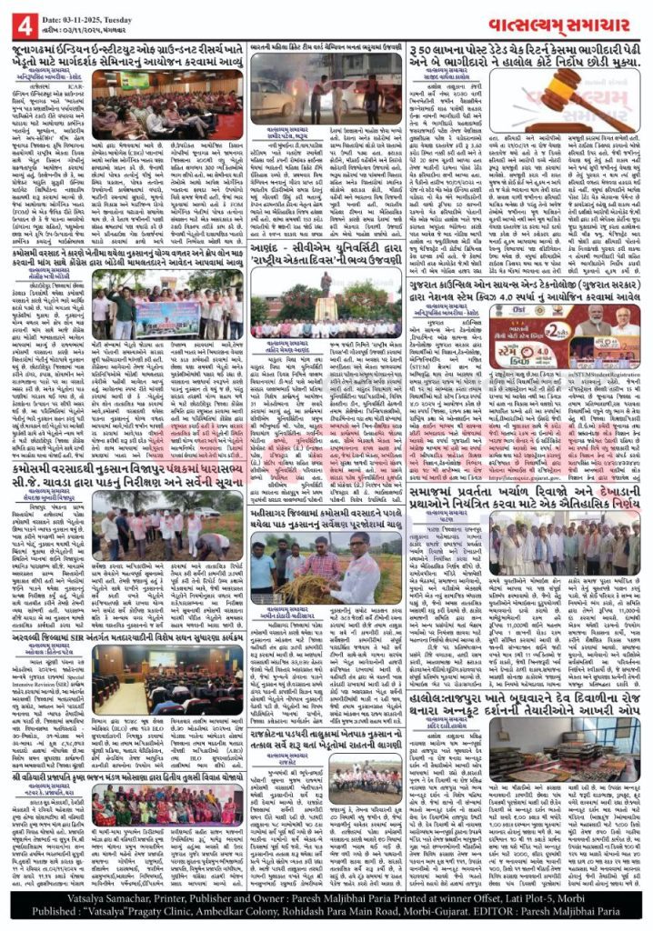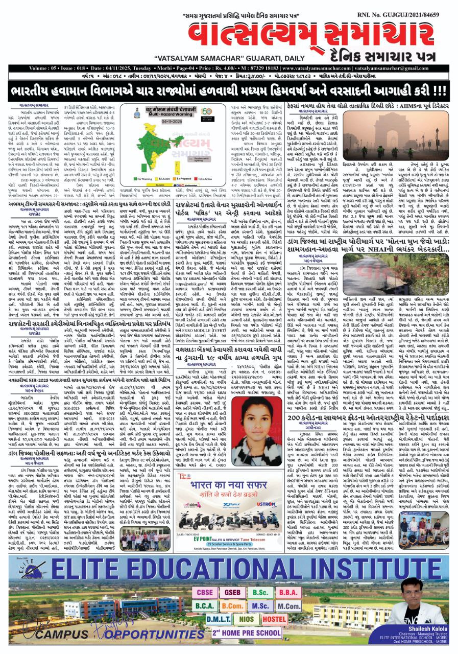 Vatsalyam Samachar E-PAPER / વાત્સલ્યમ્ સમાચારની 04/11/2025 ની PDF આવૃત્તિ