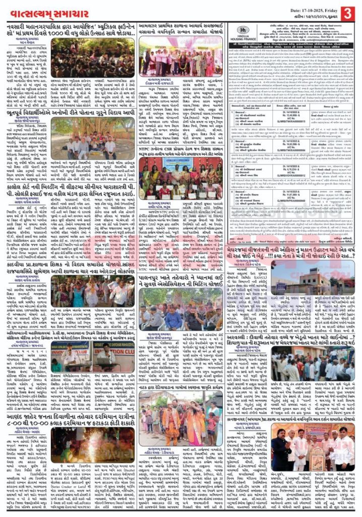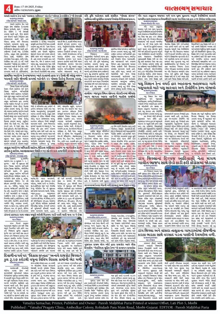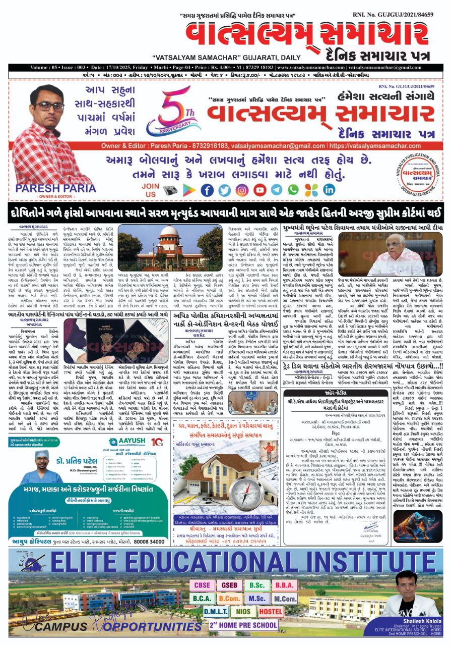 Vatsalyam Samachar E-PAPER / વાત્સલ્યમ્ સમાચારની 17/10/2025 ની PDF આવૃત્તિ