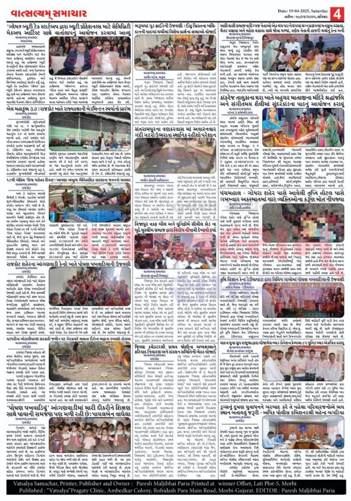 Home/E-PAPER/Vatsalyam Samachar E-PAPER / વાત્સલ્યમ્ સમાચારની 19/04/2025 ની PDF આવૃત્તિ E-PAPERGUJARAT Vatsalyam Samachar E-PAPER / વાત્સલ્યમ્ સમાચારની 19/04/2025 ની PDF આવૃત્તિ News Paper Pdf VATSALYAM SAMACHARApril 19, 2025Last Updated: April 19, 2025 6 Less than a minute View Fullscreen Sorry, there was a YouTube error. VATSALYAM SAMACHARApril 19, 2025Last Updated: April 19, 2025 6 Less than a minute Facebook X LinkedIn Messenger Messenger WhatsApp Telegram Share via Email Follow Us