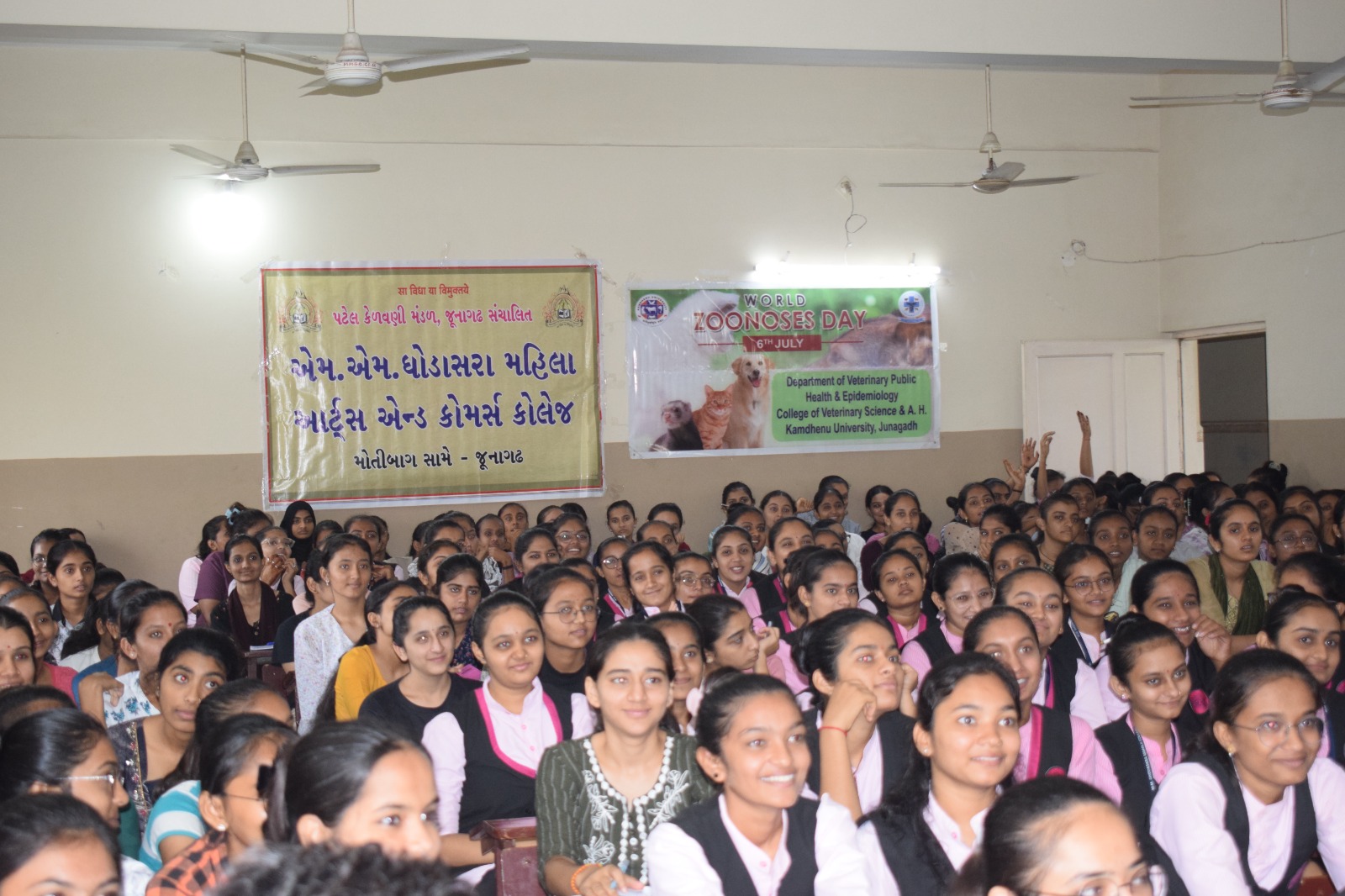વેટરનરી કોલેજ, કામધેનુ યુનિવર્સિટી, જૂનાગઢ અને એમ. એમ. ઘોડાસરા મહિલા કોલેજના સંયુક્ત ઉપક્રમે “વિશ્વ ઝુનોસીસ દિવસ ઉજવણી કરવામાં આવી