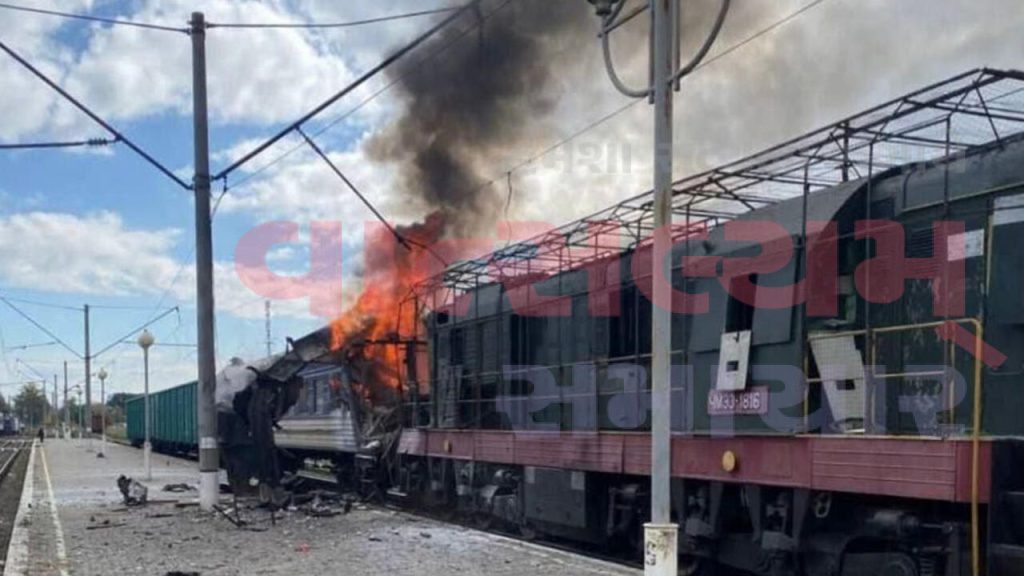 યુક્રેને કહ્યું છે કે, રશિયાએ શૉસ્ટકા રેલવે સ્ટેશનથી કીવ જઈ રહેલી ટ્રેન પર ડ્રોનથી હુમલો કર્યો છે, જેમાં ટ્રેનના ફૂરચાં ઊડી ગયા છે. ઝેલેન્સ્કીએ ઘટનાનો વીડિયો સોશિયલ મીડિયા પ્લેટફોર્મ પર એક્સ પર પોસ્ટ કર્યો છે. તેમાં જોવા મળી રહ્યું છે કે, ટ્રેન આગની લપેટમાં આવી ગઈ છે, મોટાભાગના કોચની બારીઓના કાચ તૂટી ગયા છે, તો કેટલાક કોચ સંપૂર્ણ નાશ પામ્યા છે.