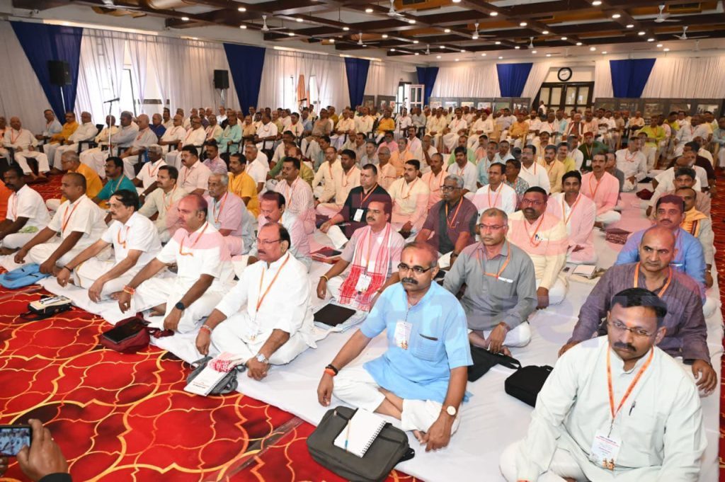 રાષ્ટ્રીય સ્વયંસેવક સંઘના આદરણીય સરસંઘચાલક ડૉ. મોહનજી ભાગવત અને સરકાર્યવાહ માનનીય દત્તાત્રેય હોસબલે દ્વારા ભારત માતાની પ્રતિમાને ફૂલો અર્પણ કરીને આ બેઠક શરૂ કરવામાં આવી. આ બેઠકમાં કુલ ૪૦૭ કાર્યકર્તાઓ ઉપસ્થિત છે.