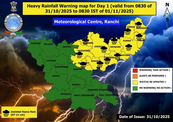 બંગાળની ખાડીમાં ઉદભવેલું ચક્રવાત મોન્થા શાંત થઈ ગયું છે. પરંતુ તેની અસર દક્ષિણ ભારતના રાજ્યોમાં ઠંડીના રૂપમાં જોવા મળી રહી છે. જ્યારે આજે 31 ઓક્ટોબરના રોજ દેશના કેટલાક રાજ્યોમાં હવામાન સામાન્ય કરતા ઠંડુ અને શુષ્ક રહી શકે છે. અરબી સમુદ્રમાં ડિપ્રેશનનો વિસ્તાર રચાયો છે અને 3 નવેમ્બરના રોજ પશ્ચિમી વિક્ષેપ સક્રિય થઈ રહ્યો છે. જેના કારણે ઉત્તર ભારત સહિત દેશભરના 13 રાજ્યોમાં વરસાદ પડી શકે છે. દિલ્હી-NCRમાં પણ 5 નવેમ્બર સુધી વાદળછાયું વાતાવરણ રહી શકે છે. સવારે અને સાંજે હળવું ધુમ્મસ છવાઈ શકે છે.