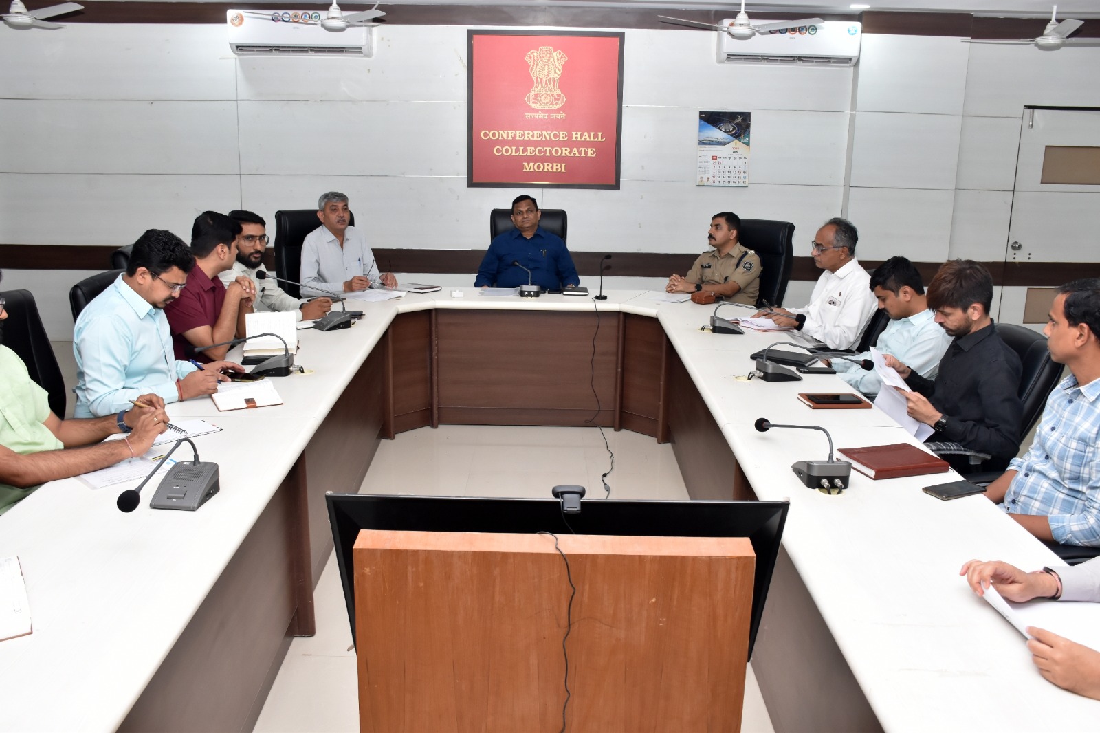 ગુજરાતના માન. મુખ્યમંત્રીશ્રી ભૂપેન્દ્રભાઈ પટેલની આગામી ૨૬ માર્ચના રોજ મોરબી જિલ્લાની સંભવિત મુલાકાત બાબતે તૈયારીઓના ભાગરૂપે મોરબી જિલ્લા કલેક્ટરશ્રી કે.બી. ઝવેરીની અધ્યક્ષતામાં બેઠક યોજાઈ હતી.